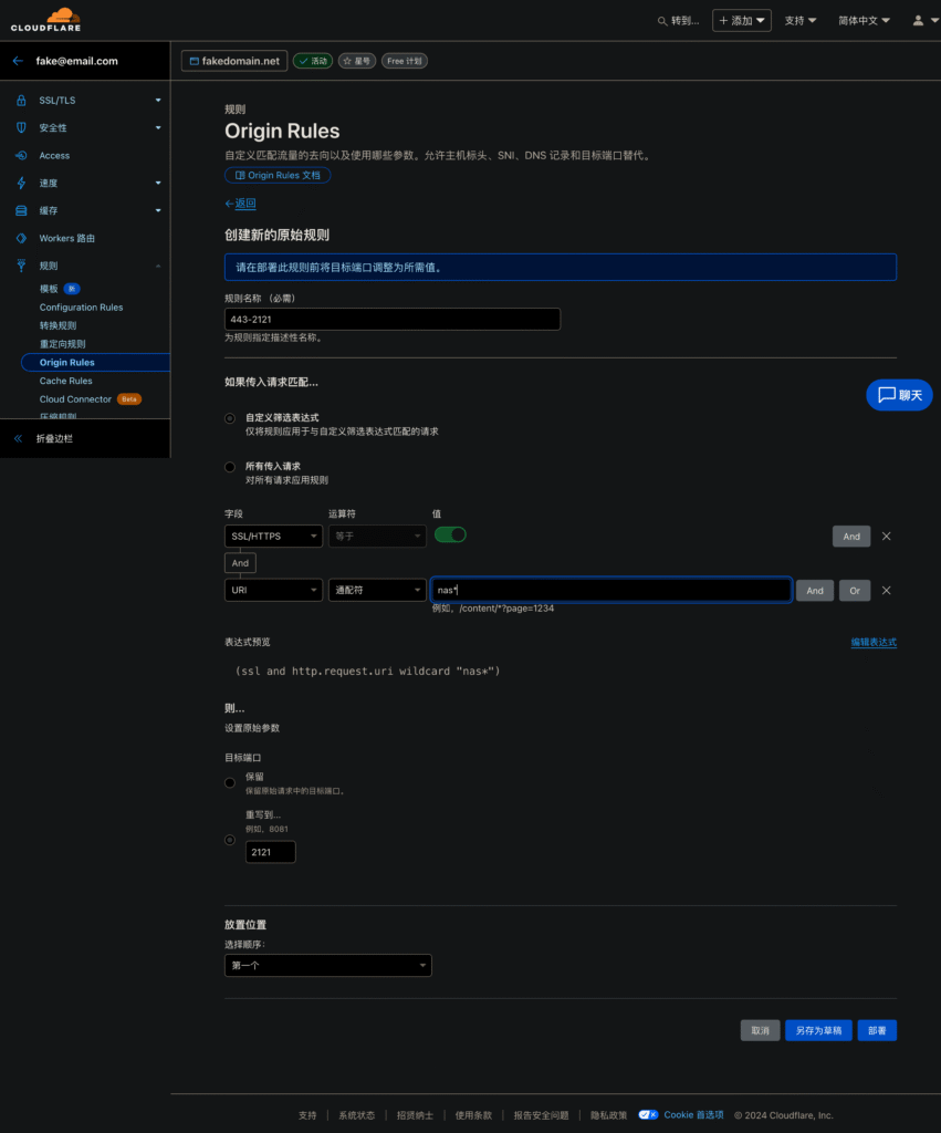 CloudFlare的源规则非常人性化,可以通过“And”和“Ro”建立多种复杂的判断组合,适应各种情况。如果在单一网段只有一个主机的话,可以通过IPv6的网段做判断,这样不需要前缀,也便于记忆。但是我在“2408”下还有其他的主机,所以选择了前缀的方式来做判断,在NAS上的服务都在二级域名中加了“nasx”做为前缀,这样的设置保证了这个主域名下的其他二级域名不会出现冲突的情况。